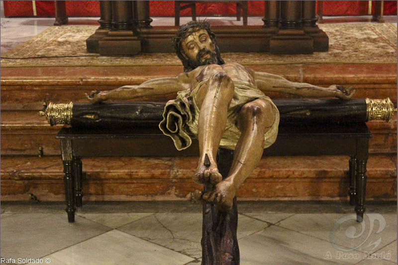 Ayer noche se traslado el Cristo de Burgos portado por sus hermanos para sus cultos en un sobrio acto en el que no se apagaron las velas, el Cristo partió de su capilla en la nave del Evangelio rumbo a la nave de la Epístola hasta llegar al altar Mayor, donde los hermanos besaron sus pie.